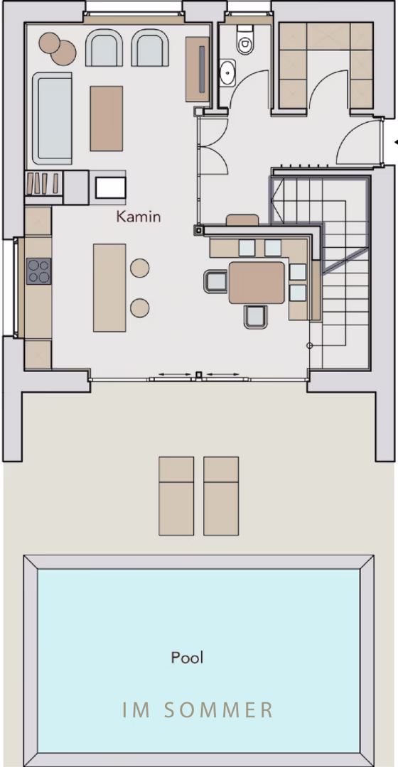 - 1 Schlafzimmer mit Badezimmer, kleiner Wohnraum, 2 Zusatzbetten möglich