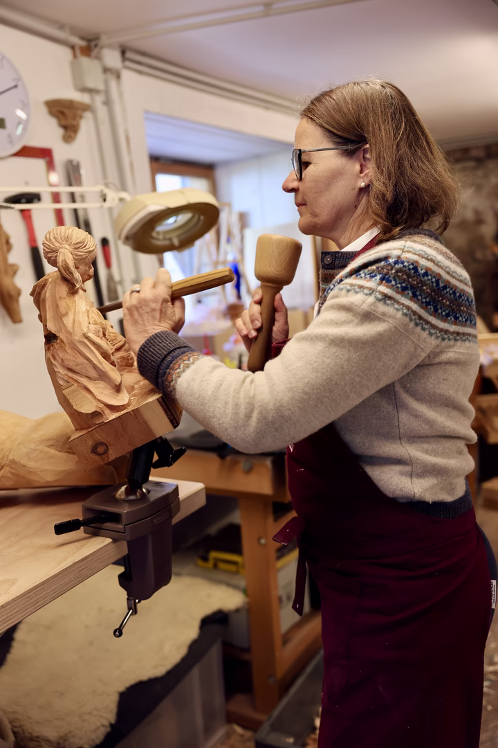 This initial fascination developed into a deep love for working with clay, wood, plaster and stone – materials I still use today to realise my ideas. After training as a sculptor with the Geisler-Moroder family in Elbigenalp, I found my creative home.