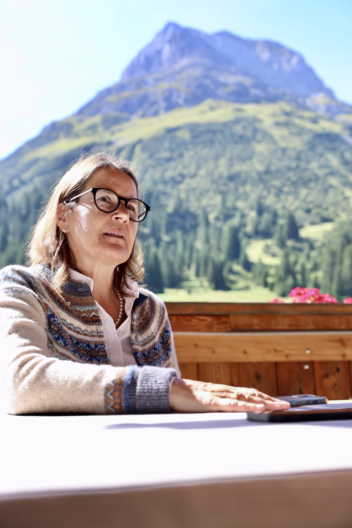 I design every room at Lech Lodge with great sensitivity for materials, light, colour and atmosphere. I am supported in this by my husband Klaus – a collector, creative sparring partner and discoverer of beautiful things – as well as by architect Christian Prasser, a long-time friend from childhood, who shares our vision architecturally and takes it further.